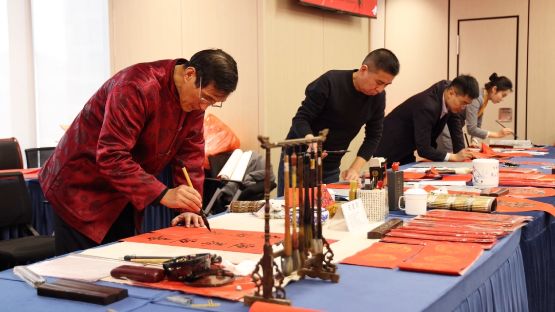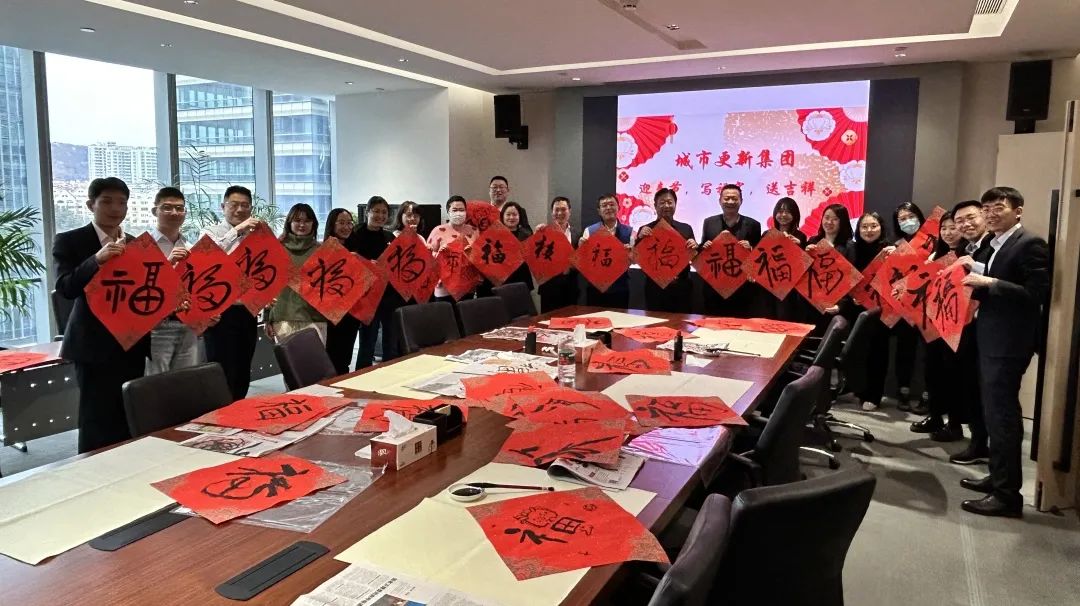城投集团工会、城金集团、产业园集团举办了“喜迎新春 龙行龘龘”活动,广大职工积极参与了贴春联、剪窗花、投壶、民俗食品分享等活动,特别邀请了崂山区非物质文化遗产传承者苏霞,青岛市书法艺术促进会副主席史建民等专家,为职工们讲解、手把手教学剪纸、书法等非遗技艺。活动共计送出对联、福字、窗花百余份,传递着浓浓年味,也向干部员工们送上了工会“娘家人”的祝福。城更集团、地产集团同步开展写福字、送春联活动,广大职工拿着一张张红红火火的福字、一份份寓意团圆和美的花饽饽,喜笑颜开,纷纷表示来年要以更好的精神面貌,携手奋进,为集团高质量发展贡献力量。