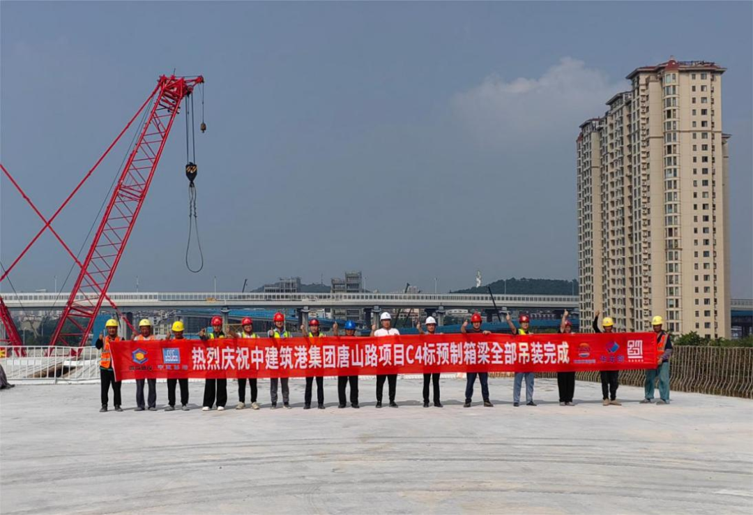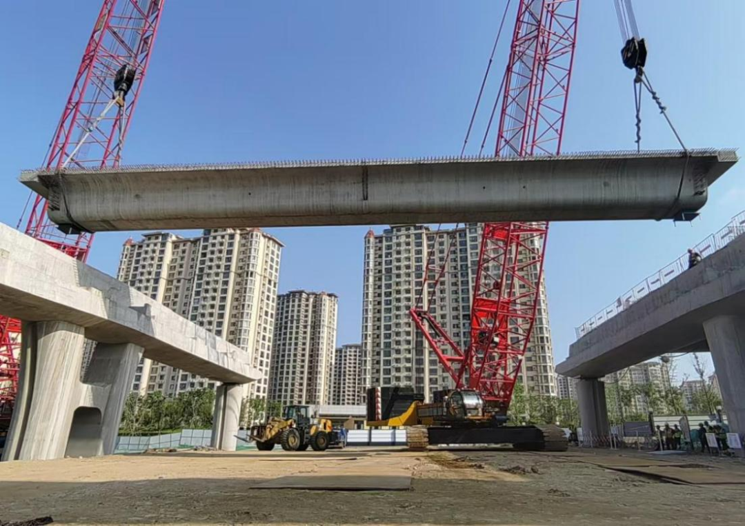 唐山路快速路工程文昌路高架主线混凝土箱梁全部吊装完成