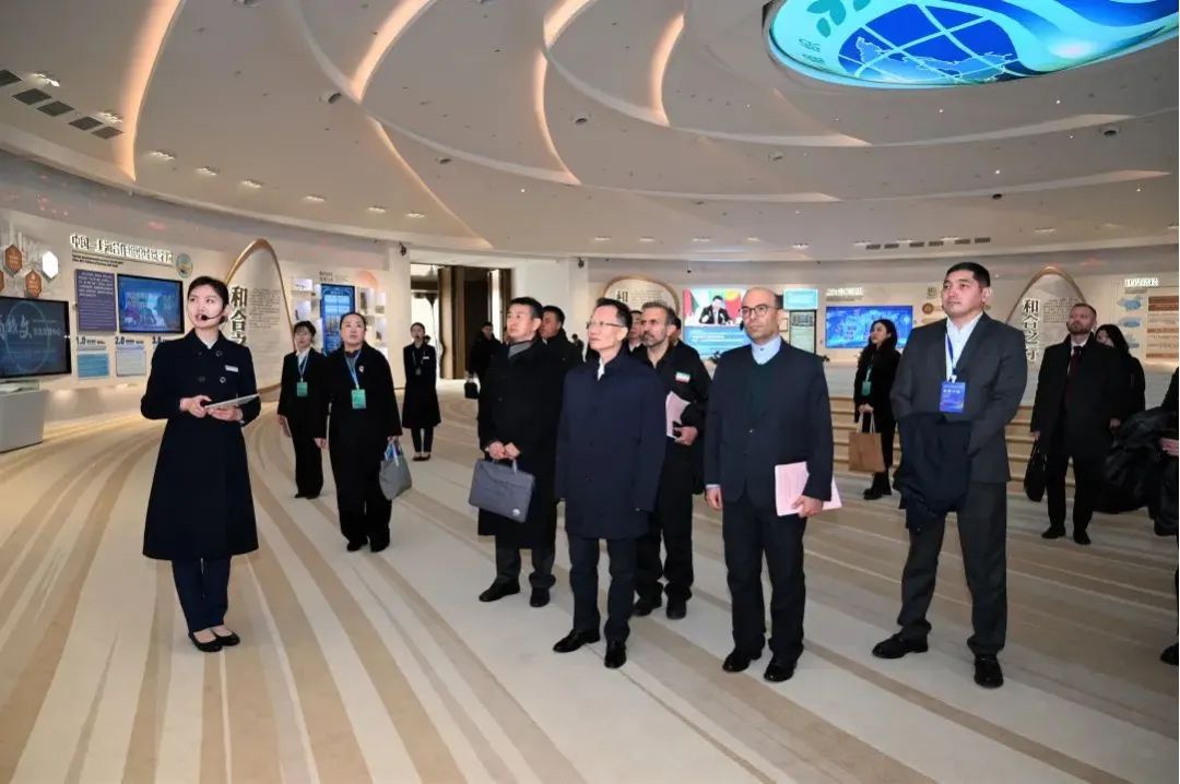 在上合示范区成果展厅,魏地春一行了解并参观各展厅功能设置,听取上合组织国家职工技能交流情况介绍。他指出,开展上合组织国家职工技能交流活动是贯彻落实习近平总书记在“上海合作组织+”阿斯塔纳峰会上重要讲话的具体实践,要以职工技能交流活动为平台,促进上合组织国家职工切磋技艺、增进友谊、互学互鉴、相知相亲,推动构建更加紧密的上海合作组织命运共同体。