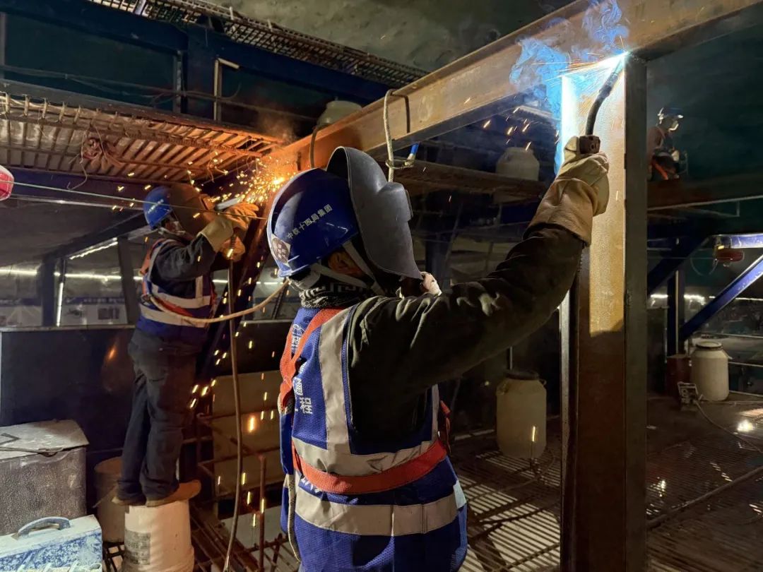 (图为衬砌台车改造电焊作业)