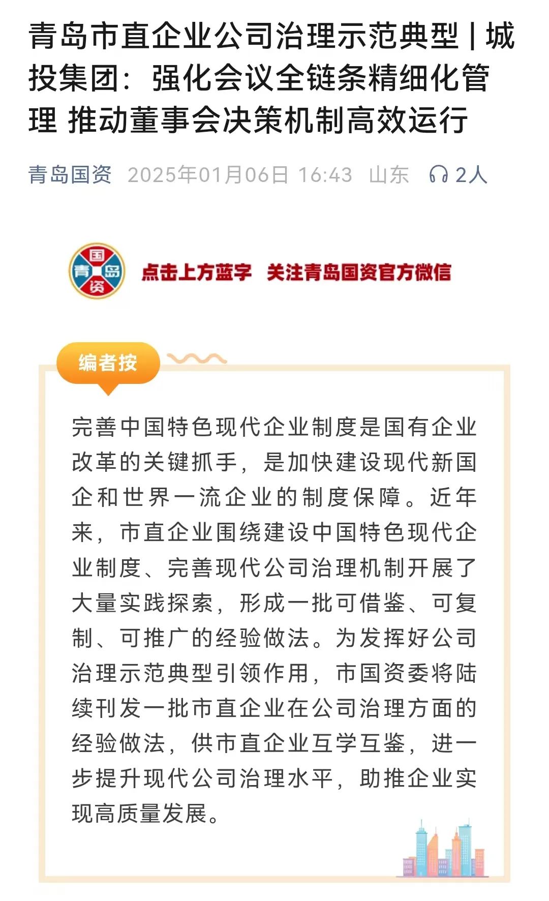 青岛国资:城投集团强化会议全链条精细化管理 推动董事会决策机制高效运行