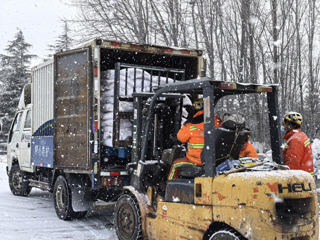 (图为青新高速城阳南养护工区融雪剂装车)