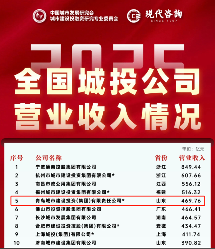 近日,中国城市发展研究会城市建设投融资研究专业委员会(简称“城投协会”)、现代咨询集团对“2025全国城投公司总资产情况”“2025全国城投公司营业收入情况”等榜单进行了联合发布。
