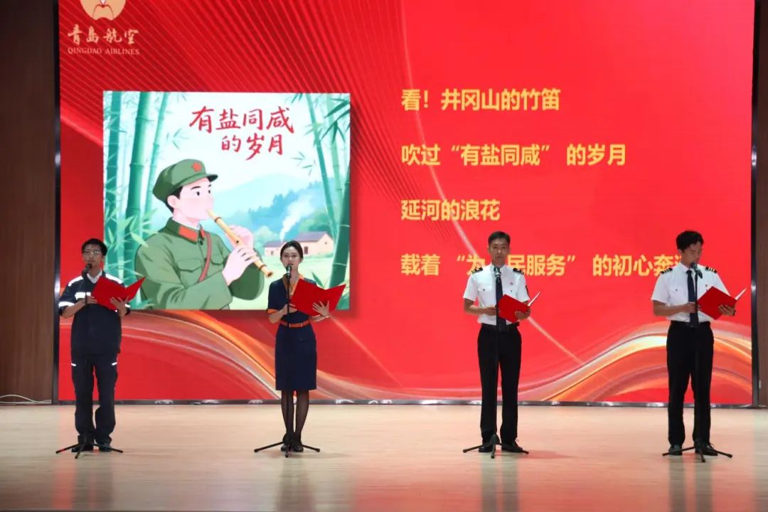 赓续红色血脉、汲取奋进力量,大会特别安排了庆“七一”伟大建党精神诗歌朗诵《百年星火照征程・青航银翼续华章》。来自公司不同岗位的党员代表们以饱满的热情和深情的朗诵,讴歌党的丰功伟绩,抒发对党的无限忠诚,将伟大建党精神内化于心、外化于行,现场氛围庄重而热烈。