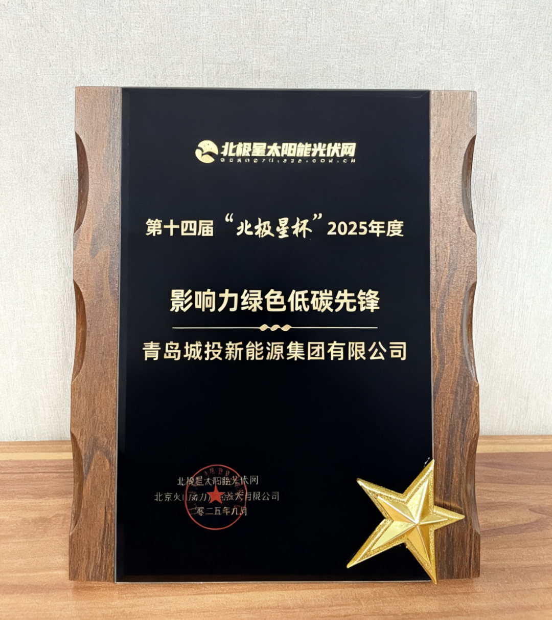 近期,2025 年光伏新时代论坛暨第十四届“北极星杯”光伏影响力品牌颁奖典礼在南京盛大举行。青岛城投新能源集团凭借在绿色低碳领域的卓越表现与突出贡献,从众多参评企业中脱颖而出,荣获“绿色低碳先锋”奖。值得一提的是,今年仅有 5 家企业获此殊荣,新能源集团作为唯一入选的地方国资能源企业,与新加坡能源集团、国家电投等行业巨头一同登榜,充分彰显了地方国资在推动区域低碳转型进程中的关键作用。