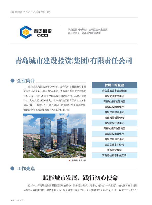 近日,《山东国资》发布《山东国资国企2024年高质量发展报告》,系统总结了全省国资国企的主要经营指标和改革发展亮点,爱游戏网页版成为青岛市唯二入选“市级国资监管和国企改革发展”案例的企业。具体内容如下: