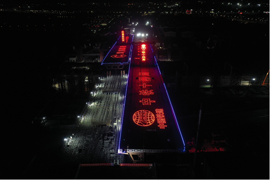 在介绍工程概况及转体筹备情况后,随着现场指挥长的一声令下,23点30,青岛新机场高速连接线工程跨铁路转体桥开始缓缓转动,历时约90分钟,在11月4日凌晨0时59分,世界最大跨度耐候钢跨铁路钢箱梁圆满完成空中转体。该项关键控制性节点的打通,意味着青岛新机场高速连接线建设取得了里程碑式的进展,为工程全线贯通打下坚实基础。