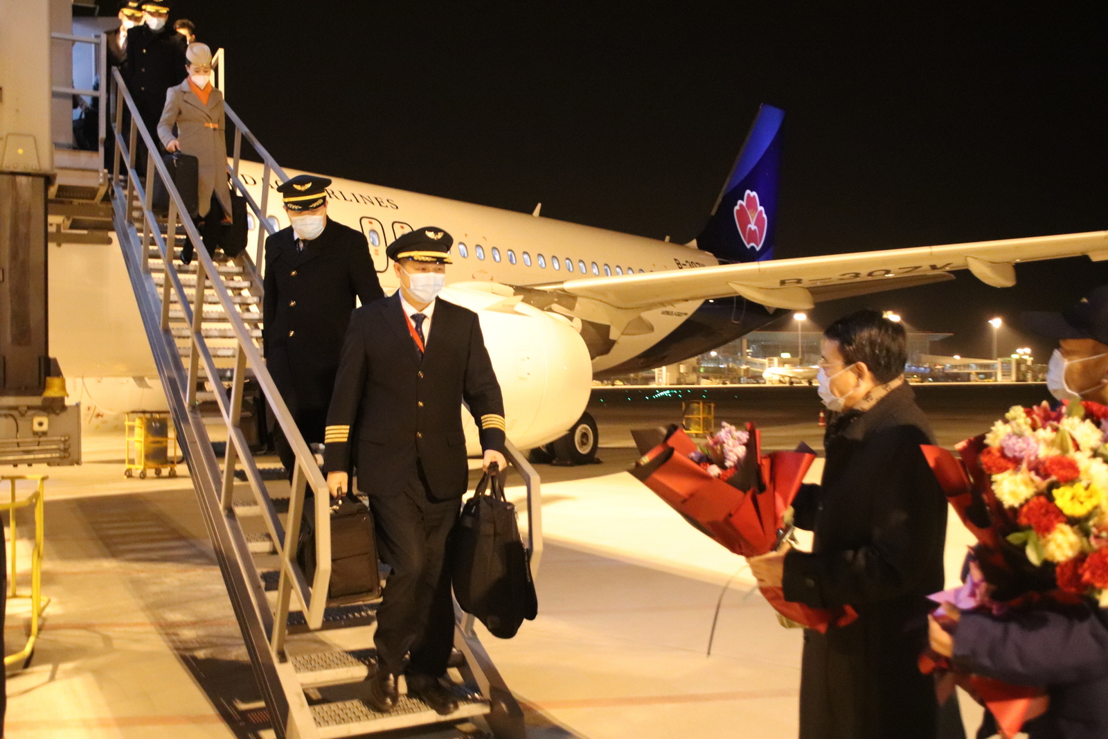 爱游戏网页版党委书记、董事长陈明东一行前往青岛胶东国际机场机坪,迎接执行2021年最后一个航班的机组人员平安归来,代表城投集团向全体机组人员和坚守岗位的一线员工表达慰问,感谢大家一年来为青岛航空的安全运行和发展做出的贡献,并送上新年祝福,希望大家在新的一年再接再厉,继续为公司安全运行和发展贡献力量。城投集团董事刘裕良,城投集团党委委员、副总经理高玉贞,青岛航空公司主要领导陪同接机。
