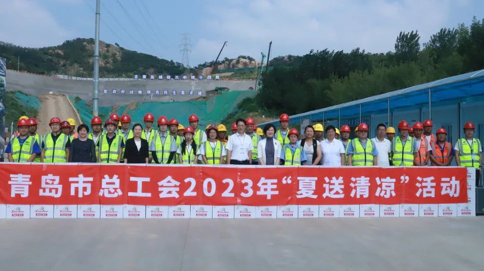 8月9日下午,青岛市总工会走进城投集团青银高速公路增设唐山路互通及连接线工程项目一线开展“情系职工 服务大局”夏送清凉活动,青岛市总工会党组成员、副主席李丽,城投集团党委委员、工会主席郭健,市总工会女职工部、城投集团党群部、交发集团相关负责人以及唐山路各参建单位、一线工人共计70余人参加。