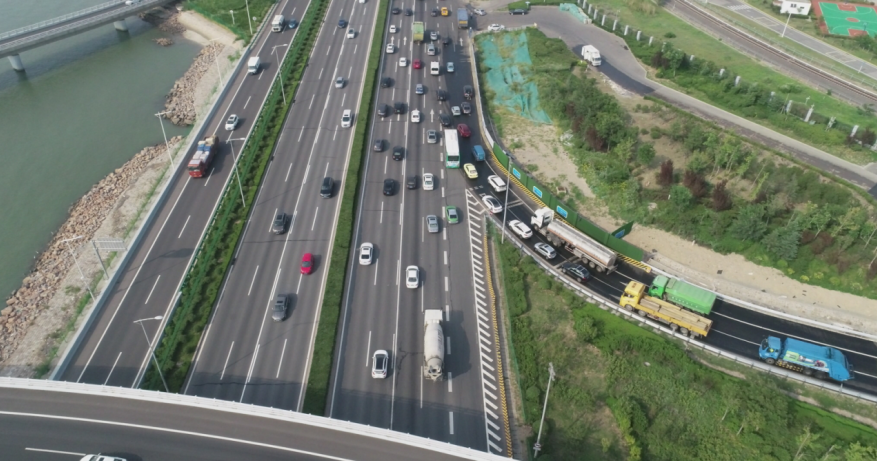 李村河互通立交G匝道拓宽改造工程是缓解交通堵点的民生工程。李村河互通立交位于胶州湾李村河入海口处,是跨海大桥高架路、大桥连接线、环湾路的转换枢纽,现状为混合式枢纽立交,2011年一期工程建成通车,包括C、D、E、G、H五个匝道,其中G匝道全长1.65公里,主要承担跨海大桥高架路向北联接环湾路(城阳方向)的交通转换功能,为单行匝道,设计交通量约1万辆。
