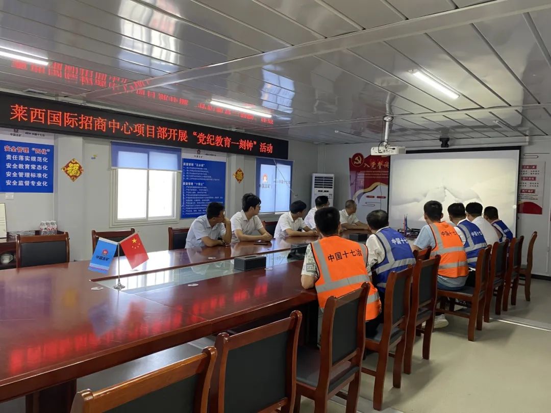 (图为莱西国际招商中心项目观看警示教育片《惊醒》)