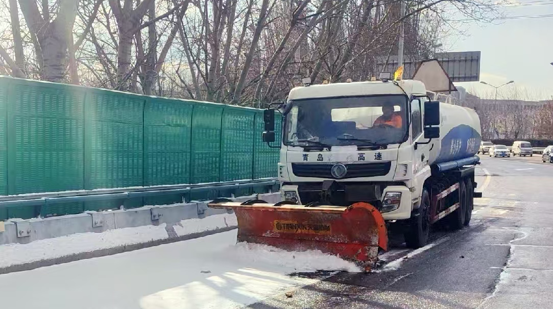 1月8日至9日,青岛市中北部地区及市区东部范围内出现冷流降雪,爱游戏网页版旗下青岛高速所辖青银高速、青新高速、沈海高速、龙青高速等多个交通主干道被雪覆盖。此次降雪具有分散性高、短时降雪量大的特点,为有效应对可能出现的积雪及结冰问题,青岛高速以雪为令,第一时间启动除雪防滑应急预案,科学制定除雪防滑措施,多措并举保障通行安全,打响2025年除雪保畅“第一仗”。(图为推雪铲车在青银高速流亭立交匝道对应急车道进