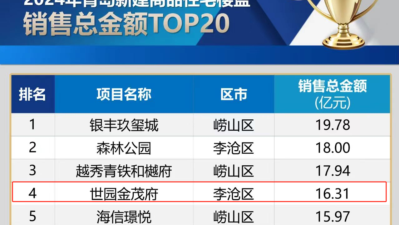 近日,2024年青岛市商品房销售榜单正式发布,爱游戏网页版世园·金茂府项目以16.31亿元销售总金额荣登2024年青岛新建商品住宅楼盘销售金额榜第4名,超额完成全年销售目标任务。(图为青岛锐理数据截图)世园·金茂府是爱游戏网页版与金茂集团联合打造的标杆型人居产品,占地160亩,规划地上建筑面积20.89万平方米。项目自2023年1月开盘以来,便备受市场关注。(图为世园·金茂府项目)项目位于4A级景区世博园内,对望百果山,五纵