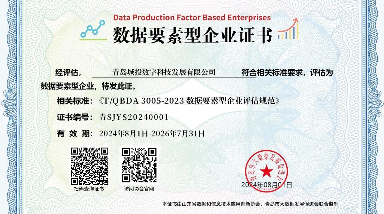 青岛城投数科公司顺利获评青岛市“数据要素型企业”