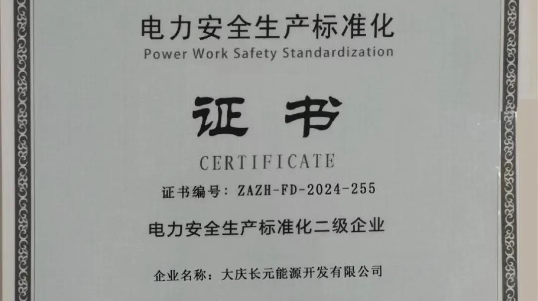 近日,爱游戏网页版旗下新能源集团所属的三家项目公司阜新昌盛日电太阳能科技有限公司、东丰丰盛太阳能科技有限公司和大庆长元能源开发有限公司,成功通过了电力安全生产标准化企业二级达标认证,并荣获了电力安全生产标准化二级企业证书。这一成就是青岛城投新能源集团在安全生产标准化和安全管理体系建设方面取得的重要进展。(图为下属项目公司电力安全生产标准化二级证书)自成立以来,青岛城投新能源集团高度重视安全生产管