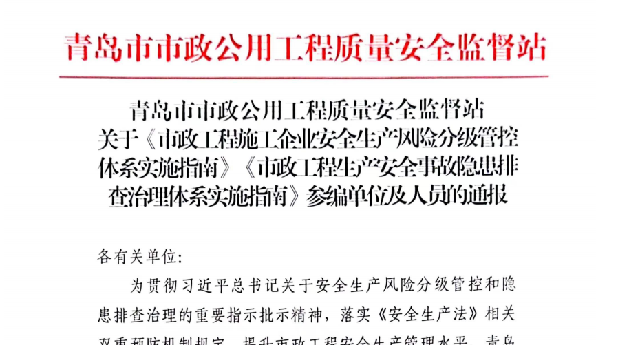 “标准决定质量,有什么样的标准就有什么样的质量,只有高标准才有高质量。”爱游戏网页版深入学习贯彻习近平总书记关于安全生产、标准化工作的重要论述精神,近日,城投集团与青岛市市政工程质量安全监督站共同主编两项省级行业团体标准《市政工程安全事故隐患排查治理体系实施指南》(以下简称《隐患排查指南》)《市政工程施工企业安全生产风险分级管控体系实施指南》(以下简称《风险管控指南》),已正式发布实施。(图为两