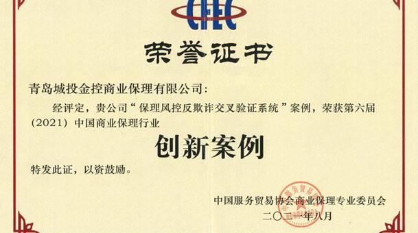 城投金控集团保理公司荣获“2021中国商业保理行业创新案例奖”