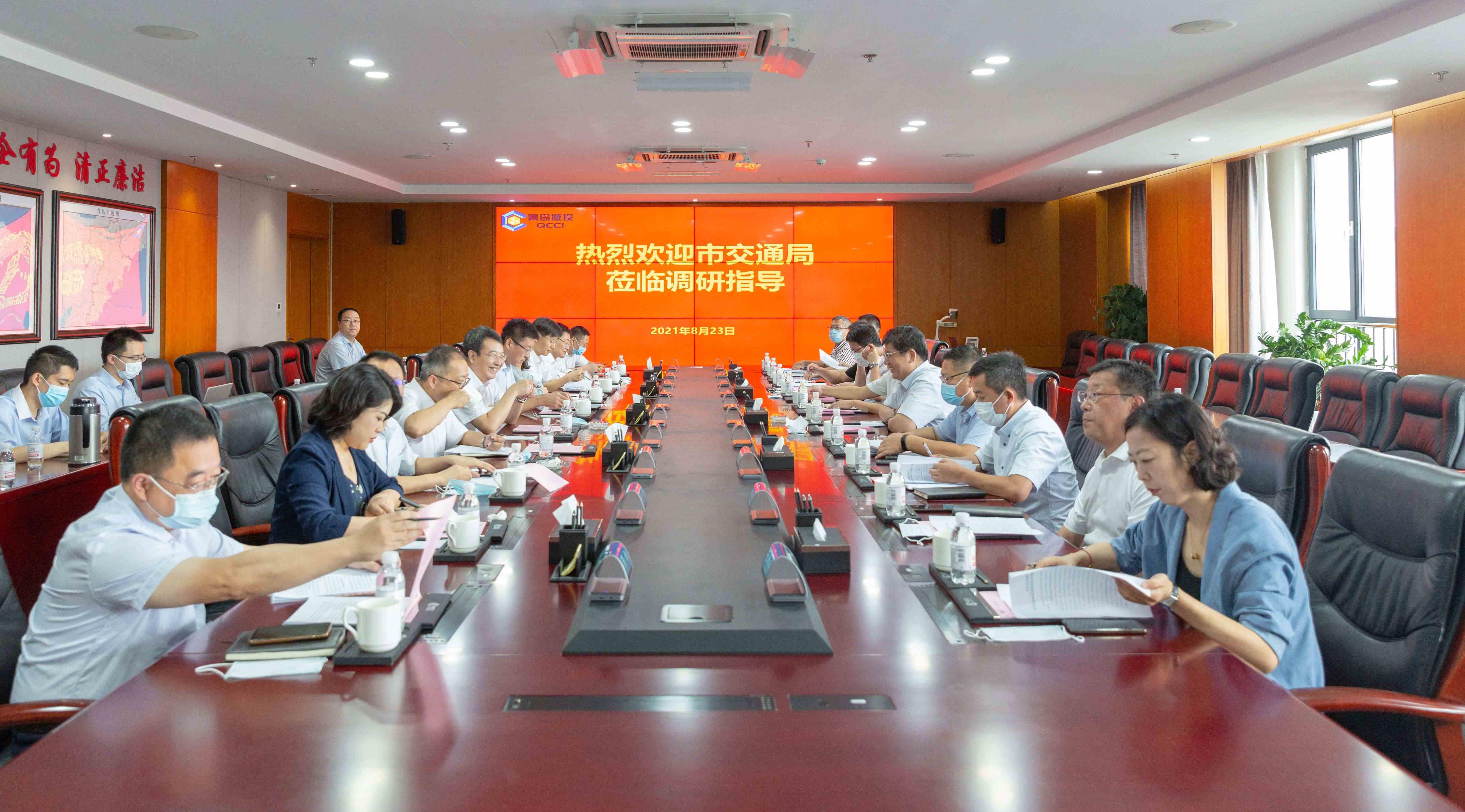 8月23日上午,市交通运输局主要领导李虎成带队到城投集团调研。市交通运输局副局长崔学军,城投集团党委书记、董事长陈明东,党委副书记、总经理臧毅杰,党委委员、副总经理于志军,总经理助理、财务部部长李庆香等出席座谈会议。